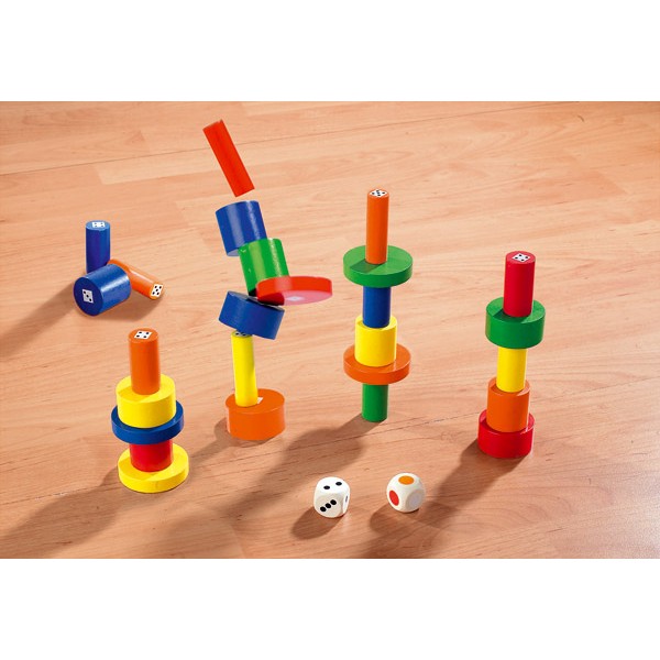 Construisez la plus haute tour en empilant les pièces de formes, tailles, épaisseurs et couleurs différentes. Chaque pièce porte un chiffre. Pour choisir celle que vous allez empilez, choississez le dé de couleur ou celui avec les valeurs !
